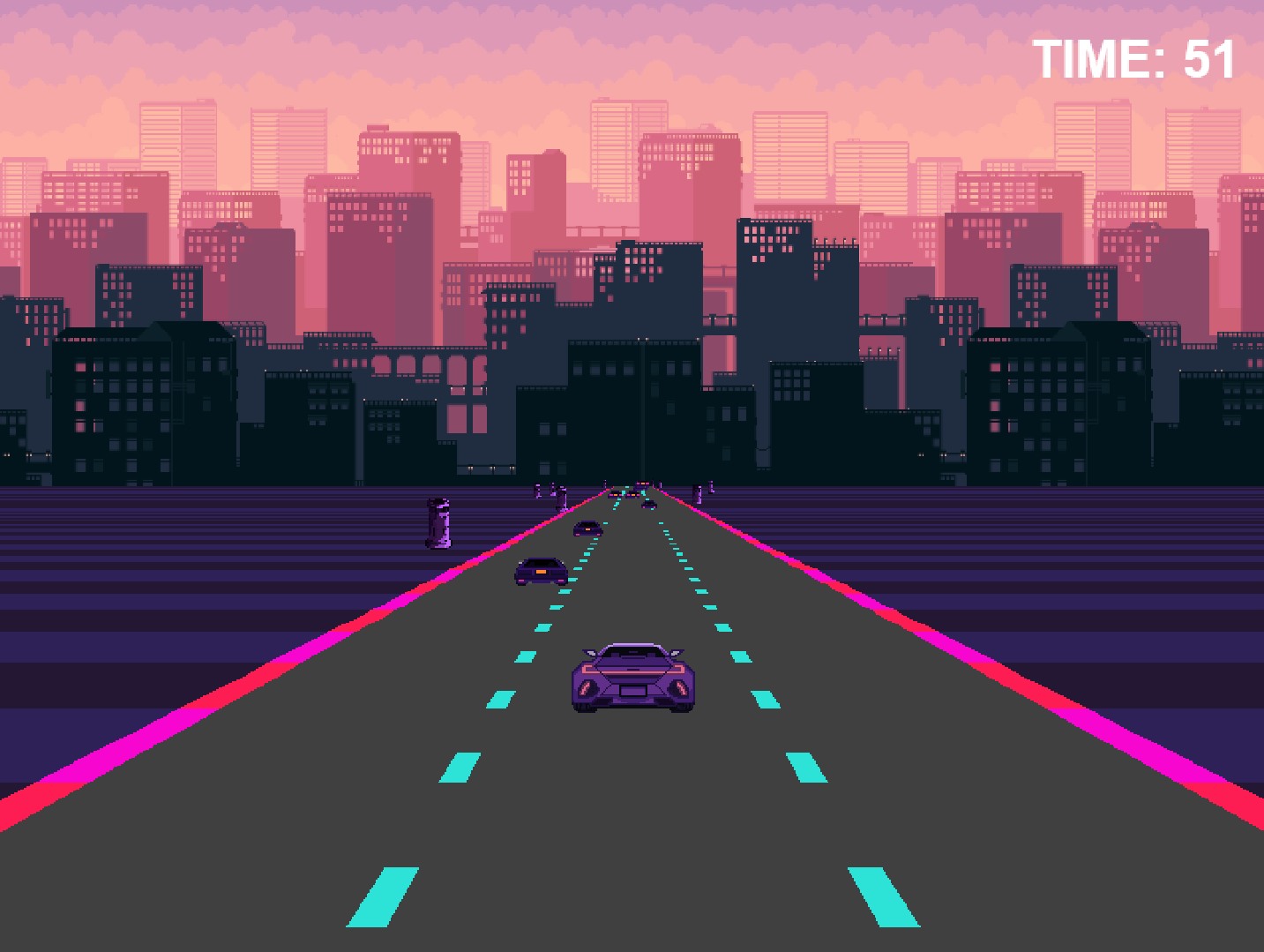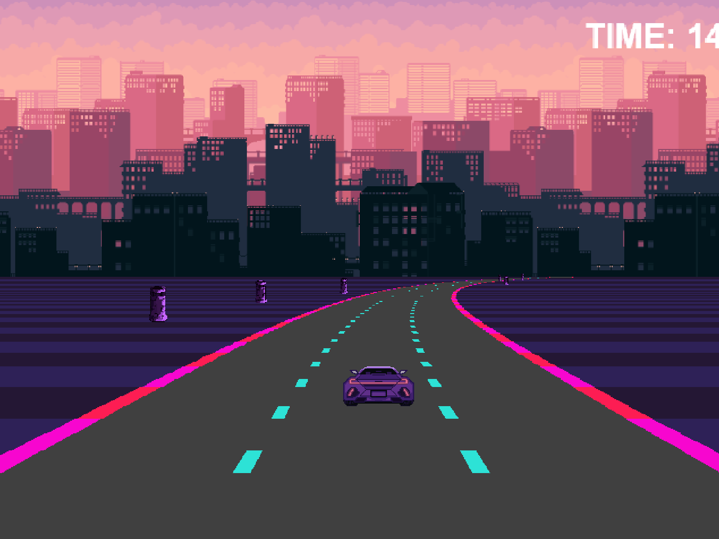 SynthRun is a high-speed arcade racing game inspired by the timeless classic OutRun. Immerse yourself in a retro-futuristic world, drifting through pixel-art cityscapes while pulsing synthwave beats push you to the limit.